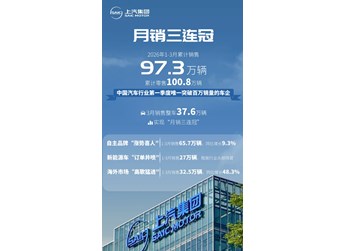 上汽集團(tuán)3月銷售37.6萬輛,1-3月累計(jì)銷售97.3萬輛